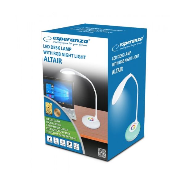 Bring color and comfort to your workspace with this modern LED desk lamp. Designed with a sensitive touch panel, it allows you to choose from 256 RGB backlight colors to match your mood. The upper LEDs provide bright daylight-like illumination that reduces eye strain, while a built-in softening filter further protects your eyes and helps minimize fatigue. The flexible arm makes it easy to adjust the angle of light to your needs, and with dual power options, it is both energy-efficient and versatile for any setting.