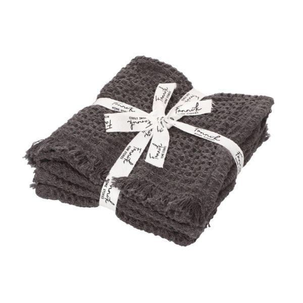 Bring sustainable comfort and style to your bathroom with the Fanni K Ruutu Towels. This 2-piece set is made from 100% recycled cotton, combining eco-conscious design with everyday functionality. The soft honeycomb weave provides excellent absorbency and a pleasant tactile feel, while the decorative fringes on the short ends add a touch of elegance.