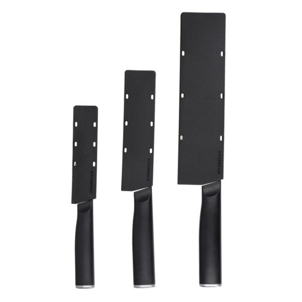 With eastern-style ergonomic handles, these knives offer optimal control and a secure, comfortable grip. The textured finish ensures slip resistance, while the chrome endcap adds a sleek, stylish touch. For added safety, custom-fit blade covers are included, keeping your knives protected during storage.