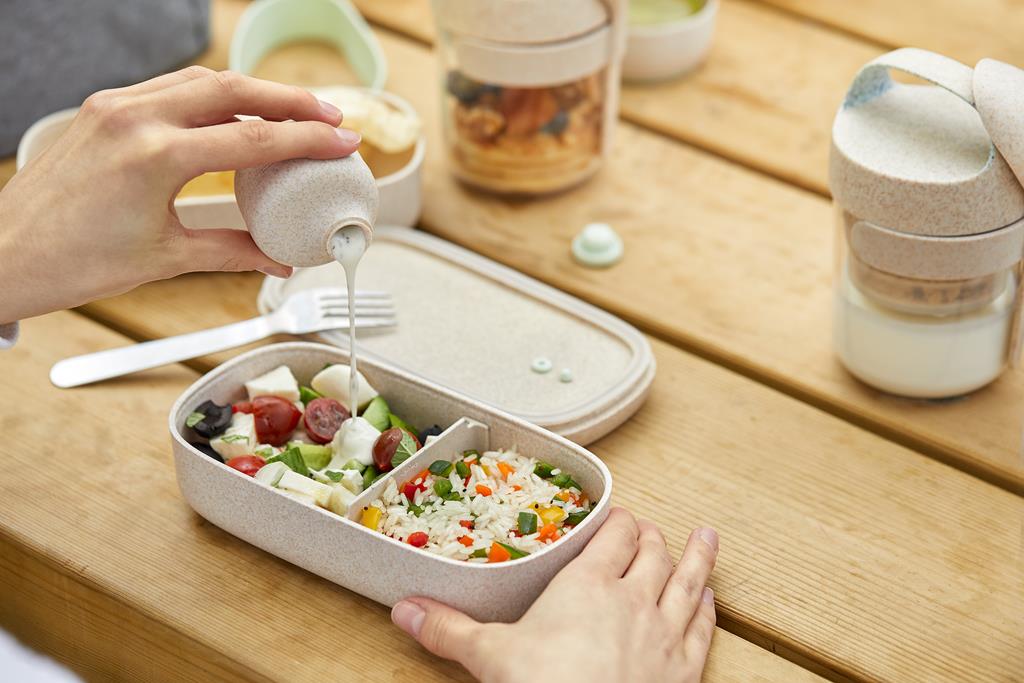 This new lunch box is made with organic materials, and a lower percentage of plastic. The main material is a combination of wood fibre and polypropylene – one of the most widely-used plastics, which is 100% recyclable and perfect for contact with food.